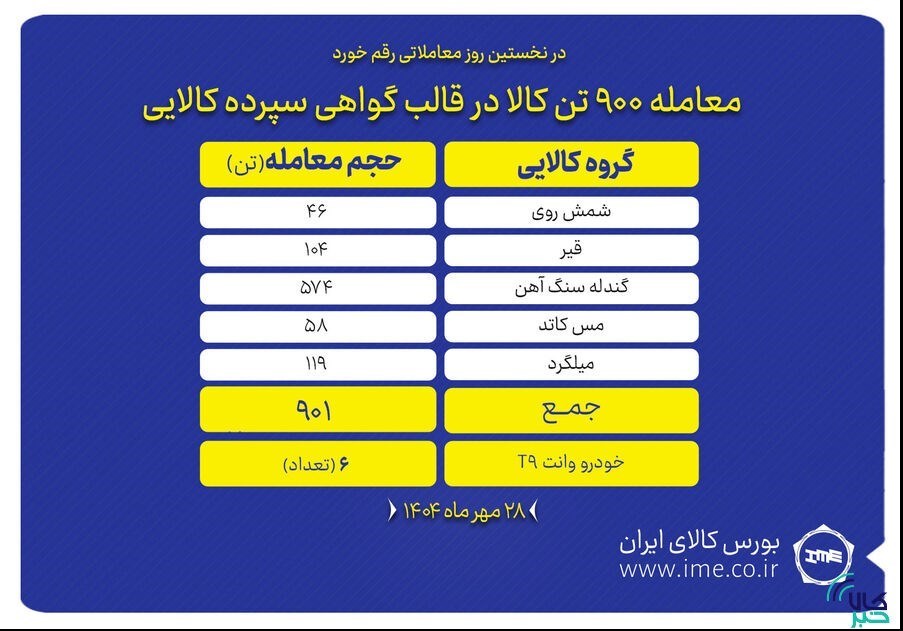 عصر معدن- در نخستین روز از راه اندازی معاملات گواهی سپرده ۶ محصول جدید و تازه وارد در بورس کالا شاهد معامله ۹۰۰ تن محصول در قالب گواهی سپرده کالایی بودیم.