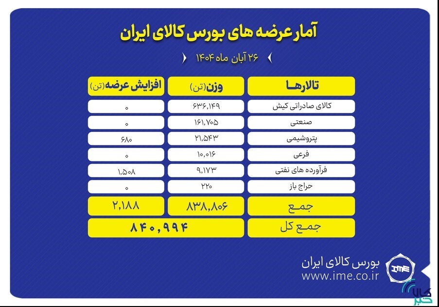 پیشتازی تالار صادراتی کیش در عرضه های امروز بورس کالا