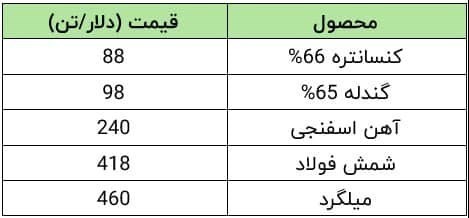 ضرایب قیمتی زنجیره فولاد