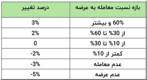 قیمت پایه هر عرضهکننده در هر جلسه معاملاتی بر اساس نسبت معامله به عرضه و بازههای تعیینشده محاسبه میشود.