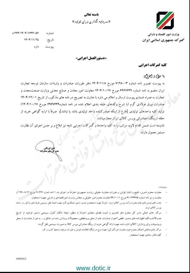 عصر معدن- گمرک جمهوی اسلامی ایران با صدور ابلاغیهای جزئیات جدید صادرات ورق فولادی گرم را منتشر کرد.;