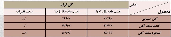 گزارش هشت ماه انجمن تولیدکنندگان فولاد ایران حکایت از آن دارد که تولید گندله سنگ آهن در هشت ماهه 1404 با رشدی بسیار ناچیز و در حد 0.1 درصد به 43 میلیون و 462 هزار تن رسید که نشاندهنده ثبات در این حلقه از زنجیره است.