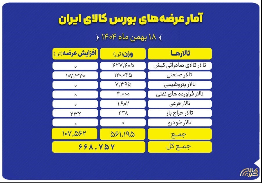 عصر معدن- تالارهای بورس کالای ایران در روز شنبه ۱۸ بهمن ماه میزبان عرضه ۶۶۸ هزار و ۷۵۷ تن انواع محصول هستند.;