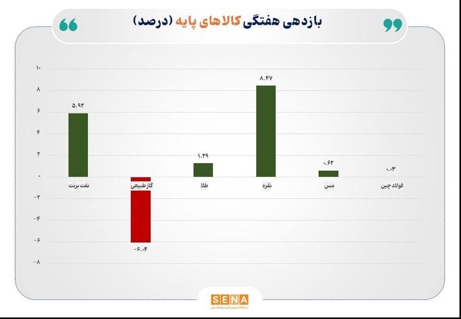 عصر معدن- نفت برنت در هفته گذشته با موتور احتمال افزایش تنشها در خلیج فارس با رشد ۵.۹۲ درصدی همراه شد و توانست بخش مهمی از افتهای قبلی را جبران کند. در مقابل، گاز طبیعی با کاهش ۶.۰۴ درصدی قیمت ضعیفترین عملکرد را در میان داراییهای مورد بررسی ثبت کرد. قیمت طلا ۱.۲۹ درصد افزایش یافت و نرخ نقره با جهش ۸.۴۷ درصدی در صدر بازدهیها ایستاد. نرخ مس رشد ۰.۶۲ درصدی را تجربه کرد و قیمت فولاد چین نیز تقریباً بدون تغییر و با افزایش ۰.۰۳ درصدی هفته را به پایان رساند.;